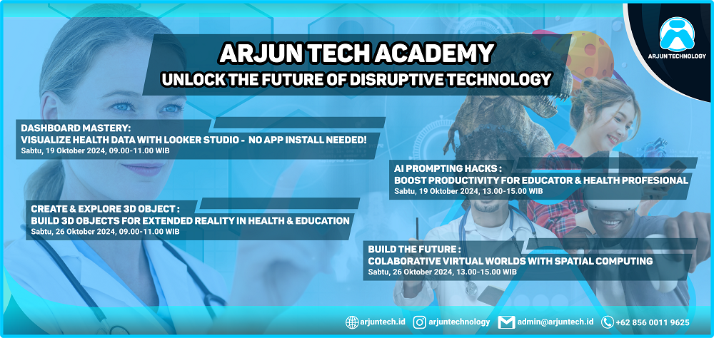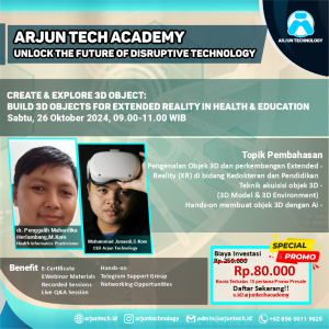 Bangun objek 3D dengan mudah dan gunakan untuk simulasi interaktif dalam bidang kesehatan dan pendidikan. Webinar ini akan membimbing Anda langkah demi langkah dalam pembuatan objek 3D yang dapat digunakan di dunia XR (Extended Reality).