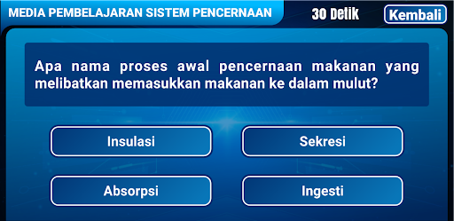 Selain itu, aplikasi ini dilengkapi dengan kuis untuk menguji pengetahuan dan memperkuat pemahaman. Dengan solusi ini, belajar tentang sistem pencernaan menjadi lebih menarik dan interaktif, memberikan pengalaman pendidikan yang mendalam dan efektif.